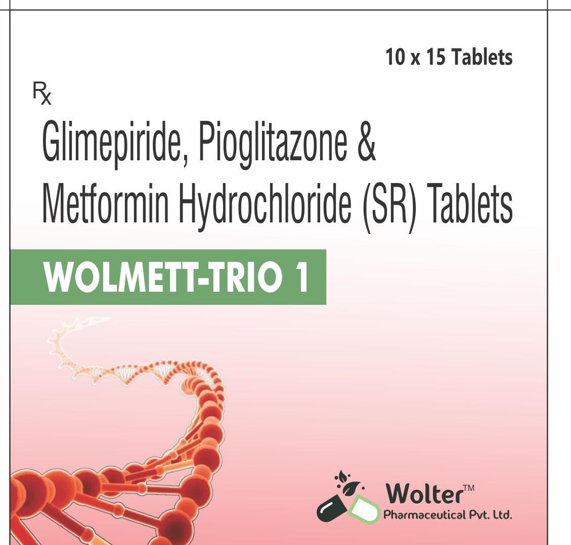 WOLMETT-TRIO 1 is an oral antidiabetic combination tablet containing Glimepiride, Pioglitazone, and Metformin Hydrochloride (SR), used for the management of type 2 diabetes mellitus when diet, exercise, and single or dual therapy do not result in adequate glycemic control.